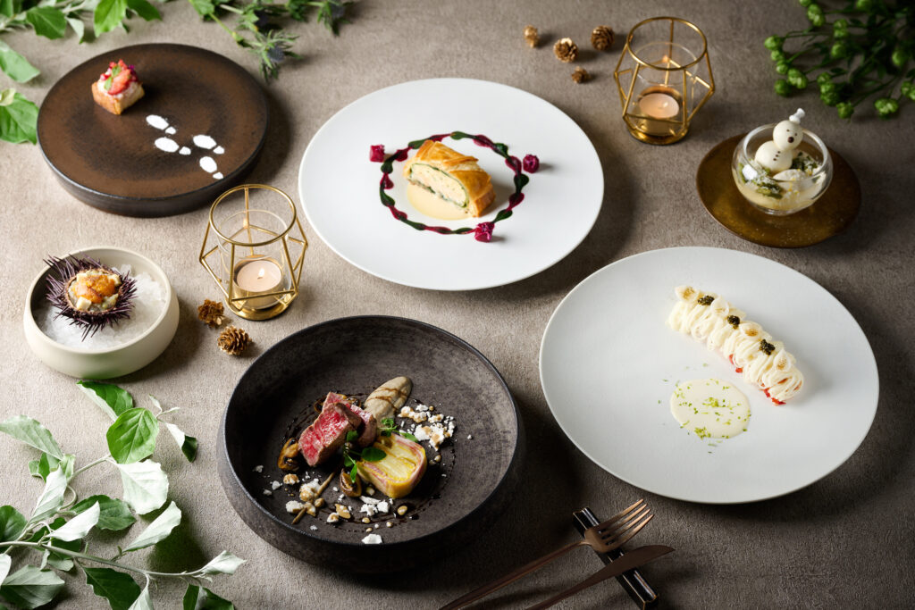 宮城県産黒毛和牛「仙台牛」やオマール海老、キャビアなど、特別な日にふさわしい食材を使用してシェフが腕を振るった、こだわりのコースメニューです。